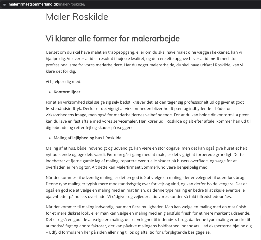 Du modtager den komplette tekst, som er inddelt i SEO venlige afsnit, og som passer perfekt til det aftalte område på din hjemmeside. Du skal blot indsætte teksten på din hjemmeside.